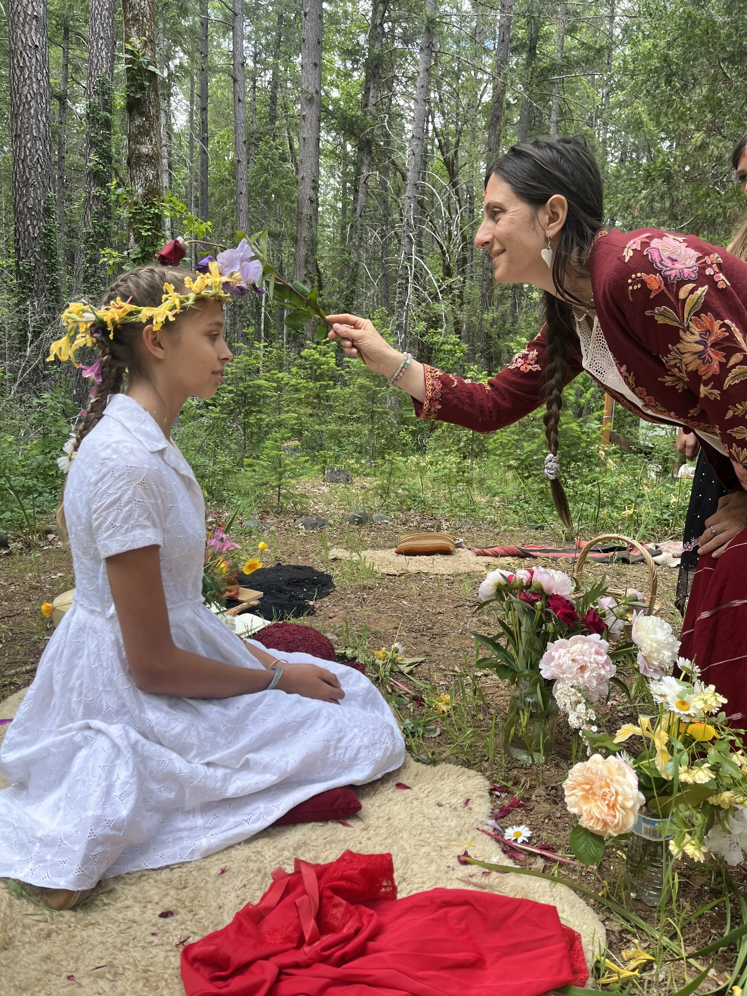 We will offer intentional spaces to explore our femininity, with empowering rite-of-passage rituals crafted for young women to learn more about their changing bodies and emotions. Our goal is to honor this sacred transition from girlhood into womanhood and create an experience in which each young woman is uplifted, celebrated, witnessed, and honored.